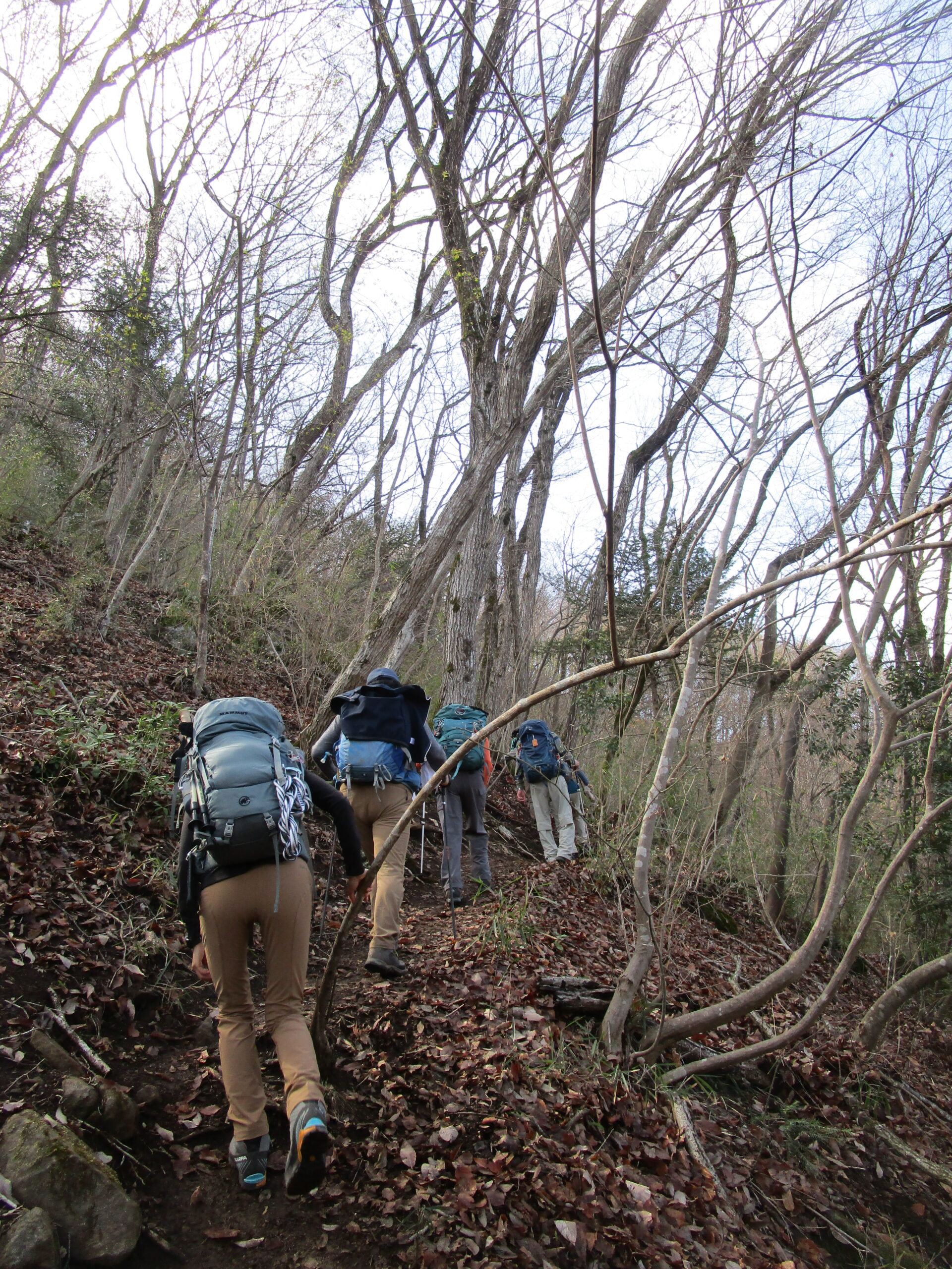この日は、入会希望の3人と一緒に計10人での山行です。「入会を考えたい」と連絡してきてくれた方は、軽い山行や例会に何度か参加してもらい、会の雰囲気や山行の内容が気に入ったら入会してもらうようにしています。