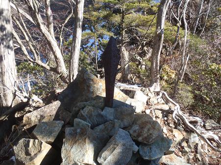 『登山道にある袖平山の標識、実際のピークはこの裏手少し上です』