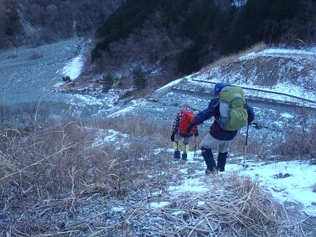 『彦右衛門谷の左岸から広河原へ下る』